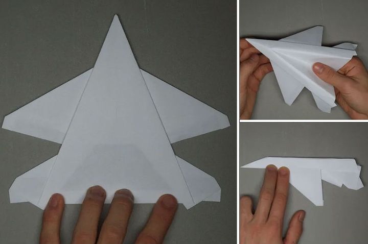 Легендарный истребитель популярен не только в действующей армии, но и среди оригамистов. Его бумажная модель станет настоящим украшением «мужской» комнаты и отличным подарком на 23 февраля, День отца или 9 мая. Единственный минус – изделие плохо летает из-за большого количества мелких складок. Для изготовления F-16 идеально подойдёт лист офисной бумаги.