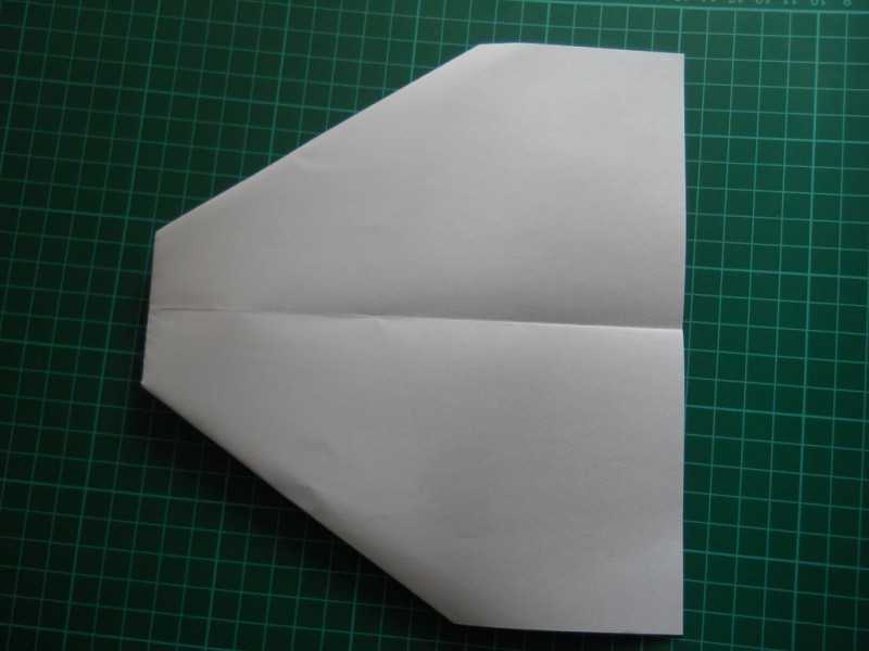 - Проверяем симметричность складок с обеих сторон. Если они будут неодинаковыми, бумажный истребитель не сможет летать и начнёт заваливаться набок.