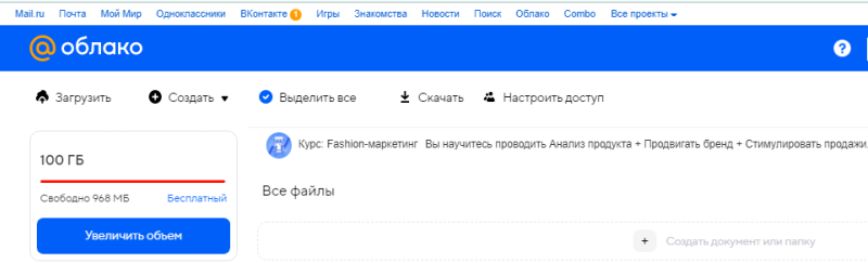Облако – это пространство в интернете, в котором вы можете хранить свои файлы. Например, если у вас есть почтовый ящик на Mail.ru, то у вас обязательно есть Облако. Даже если вы о нем не знаете, оно все равно есть.