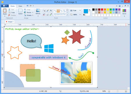 PicPick — бесплатная программа для захвата и обработки изображений с экрана. С помощью PicPick можно получить скрин всего экрана, отдельного окна или области. Также имеется функция создания скриншотов с прокруткой окна. Полученный снимок можно отредактировать прямо в программе. По своим возможностям редактор PicPick похож на редактор Paint. Здесь можно вырезать часть изображения, добавить стрелки, текст и т.д.