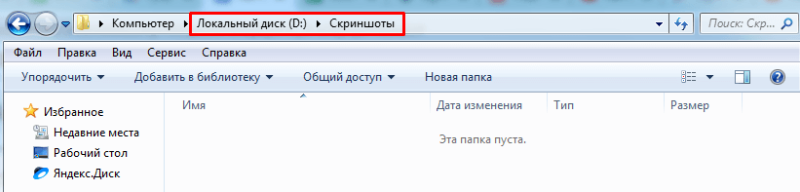 Теперь на этом диске создайте папку «Скриншоты» и грузите туда все свои скрины.