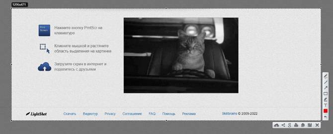 Мне кажется это еще один бесполезный, бесплатный онлайн сервис. Суть его простая. С помощью клавиши принтскрин вы делаете снимок экрана. Он сохраняется в буфер обмена. Далее заходите в проект, наводите курсор на поле вставки и нажимаете Ctrl+V. Скриншот загружается и вам выдается короткая ссылка. Есть возможность отредактировать картинку.