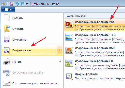 После этого полученную картинку нужно сохранить как файл. Для сохранения лучше использовать формат PNG. Это позволит получить максимально качественную картинки при минимальном размере файла.