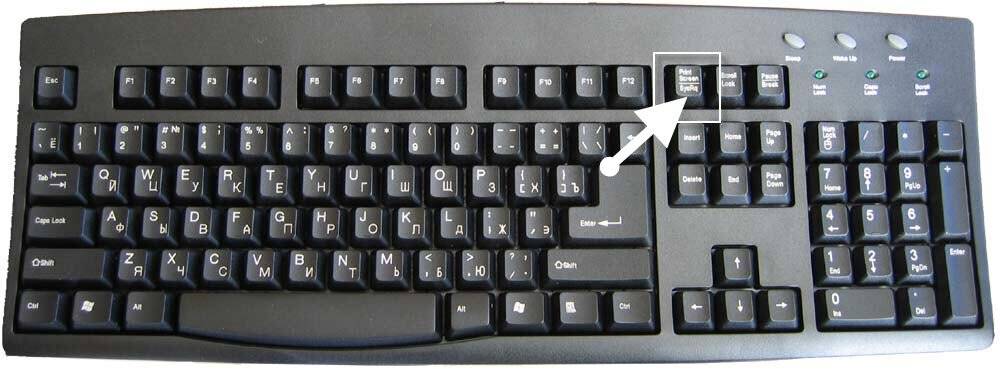 Первый шаг это нажать всего лишь одну кнопку для фото экрана. Она обычно она располагается с права в верхней части клавиатуры. Подписана она такими буквами – PrtScr и на ней же чуть пониже.