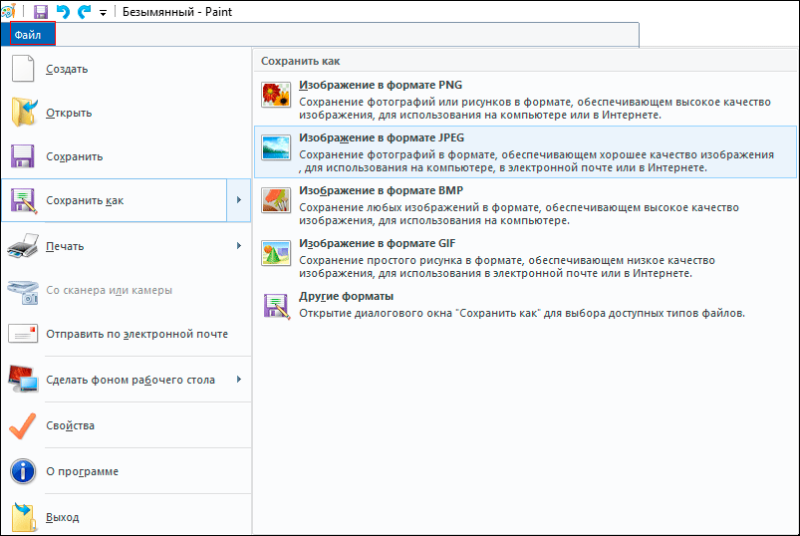 - Сохраните, предварительно выбрав формат – JPG, BMP или PNG.