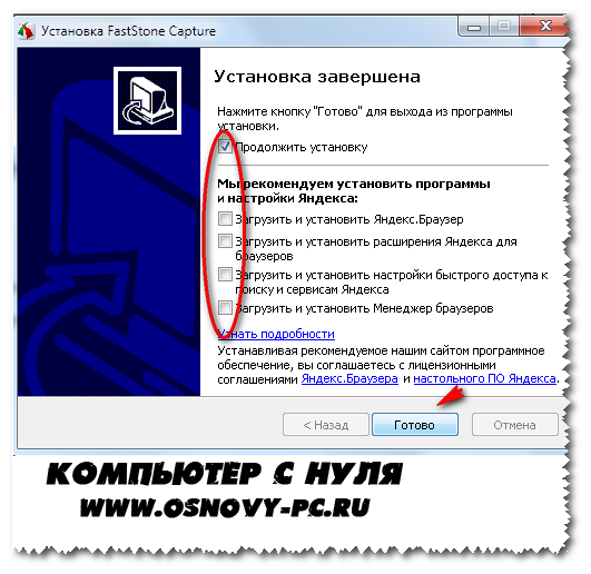 Убираем галочки, они нам не нужны, это лишняя реклама.