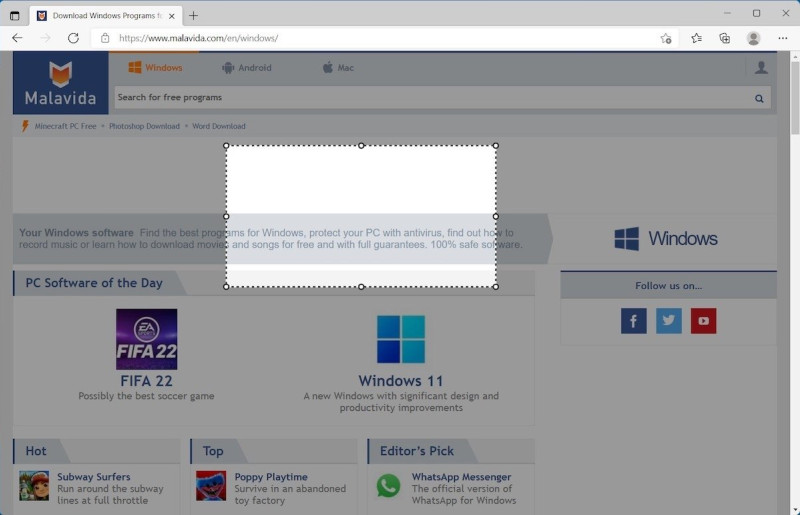 3. Как только вы отпустите левую кнопку мышки, выделенная область сфотографируется и добавится в