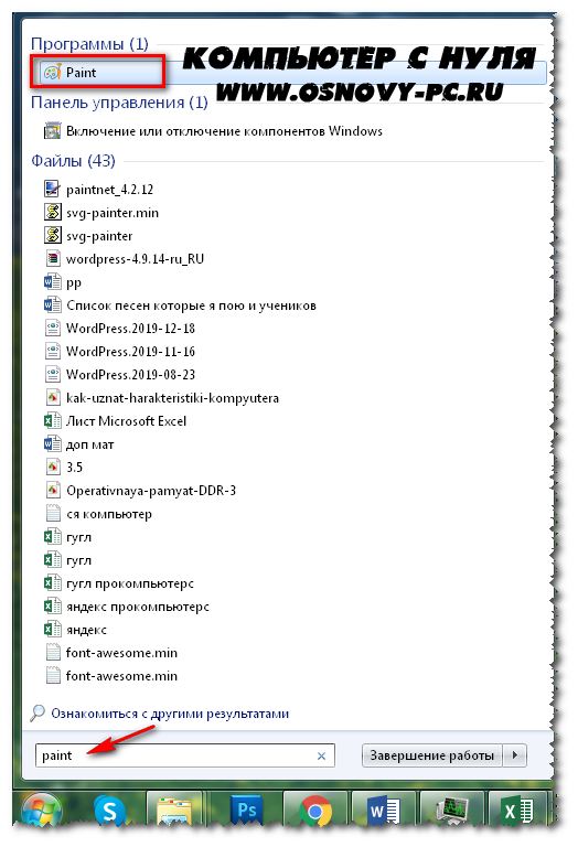 Или в строке поиска печатаем «paint» без кавычек и открываем программу