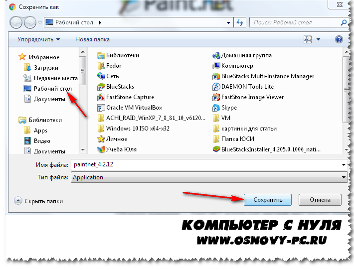 Появляется окошко сохранения файла. Сначала в нём нужно выбрать то место на компьютере, куда мы хотим записать
