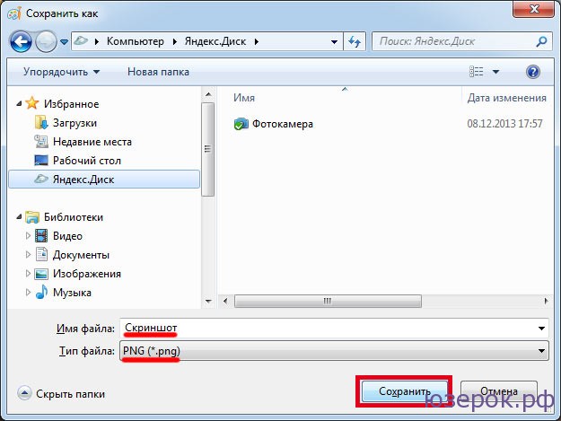 туда новое имя для скриншота. В поле формат выбираем PNG, либо JPG. После чего нажимаем «Сохранить».
