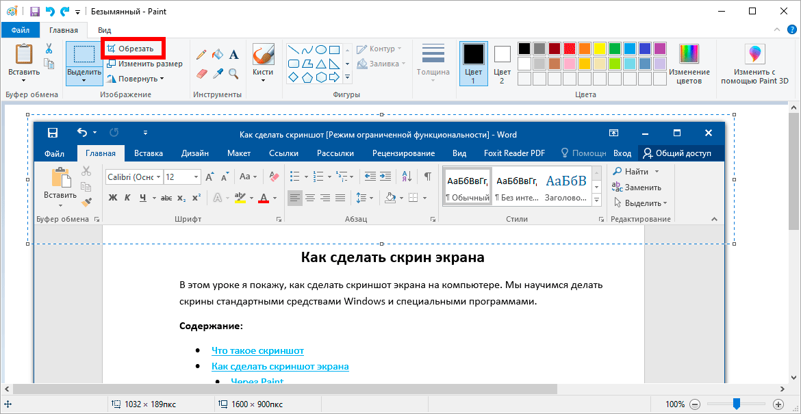Затем переходим в штатный редактор Paint или текстовый Word. Вызываем вспомогательное меню и выбираем пункт «Вставить» либо нажимаем комбинацию Ctrl + V.