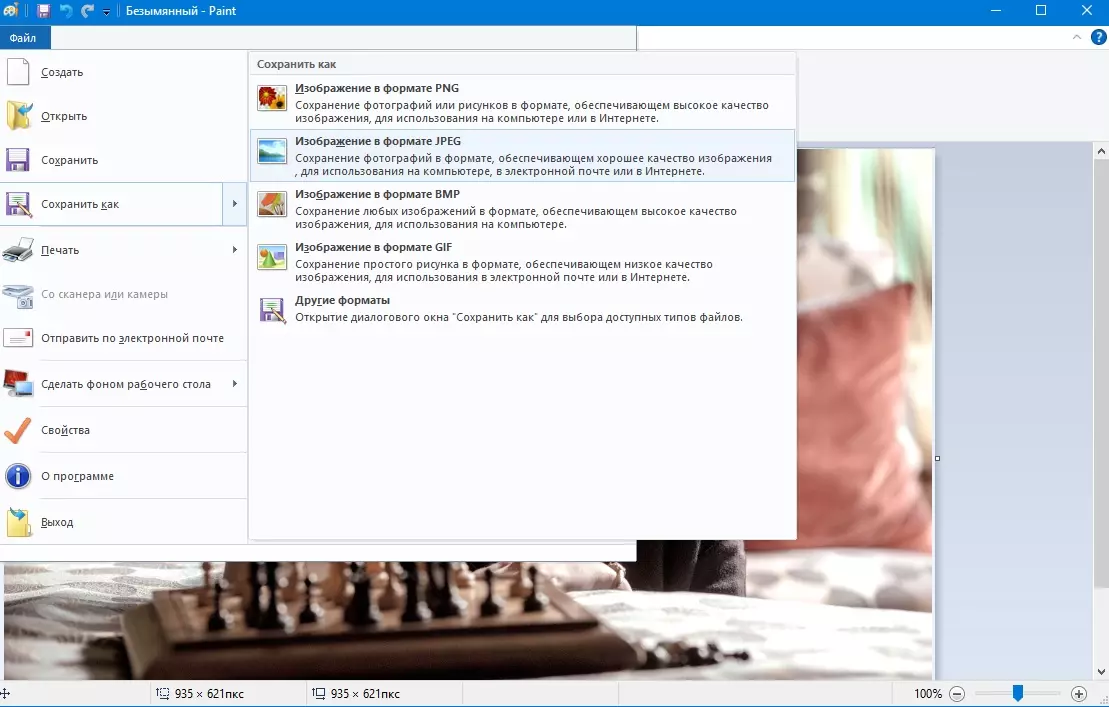 - Сохраните, предварительно выбрав формат – JPG, BMP или PNG.