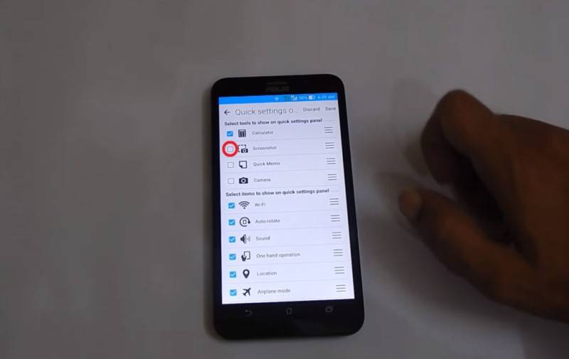 - Меню быстрой настройки (начиная с Zenfone 5) — кнопку «Скриншот» можно найти, проведя по экрану сверху вниз. Если такая клавиша отсутствует по умолчанию, для ее активации следует перейти в раздел «Опции быстрой настройки» в параметрах смартфона.