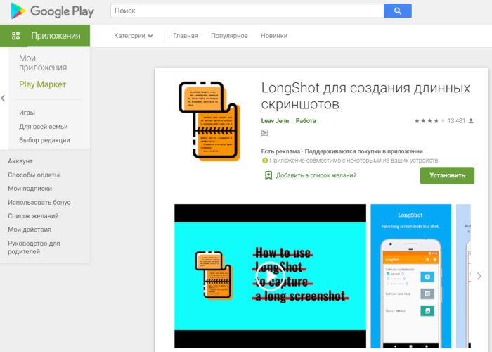 Но просторы магазина официальных приложений для Android чересчур обширны. Из-за этого поиск подходящей программы займет действительно много времени. Ведь каждое программное обеспечение нужно скачать, установить и протестировать его возможности. Все это мы уже сделали за вас и выбрали самый простой и надежный инструмент для создания длинных скриншотов – приложение LongShot.