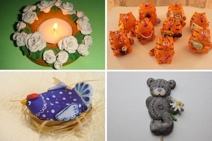 Сколько замечательных поделок можно создать из этого простого материала! Необычные новогодние игрушки, фигурки животных, любимых персонажей и многое другое – огромный простор для фантазии ребенка или взрослого. Из такого “пластилина” можно сделать слепок ручки или ножки малыша, это станет самым милым сувениром на память.