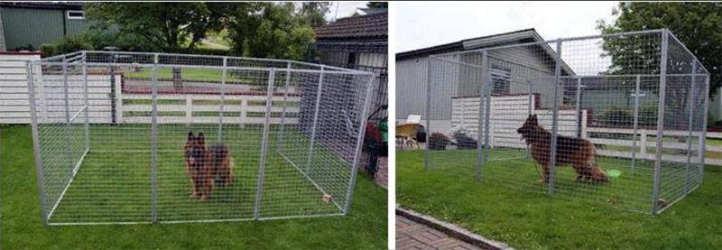 Собачьи вольеры обычно изготавливают из металла. В зависимости от размера, клетки характеризуются различной прочностью. Чем прочнее материал, тем более устойчивая, тяжелая конструкция. Вес не важен, если сооружение стационарное