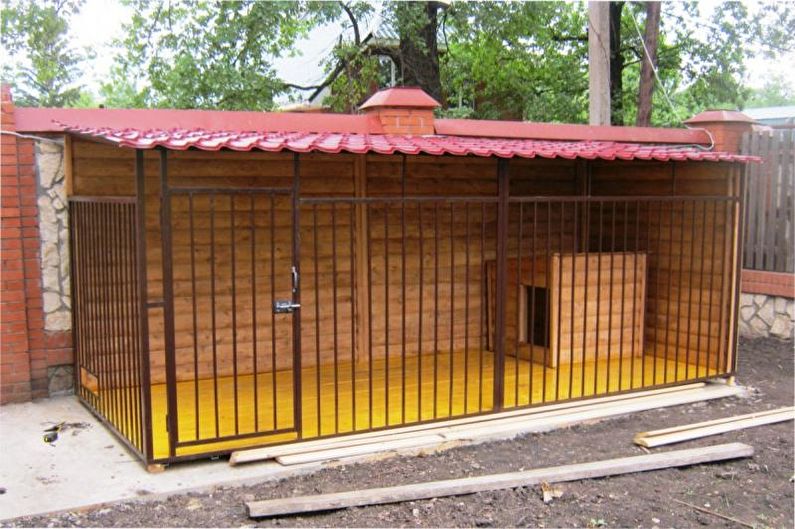 2. Закрытые конструкции – называются промежуточными конструкциями. Внутри в обязательном порядке устанавливают будку или делают полы. Так как собака находится в нем длительное время, этот вольер обязательно изолирован. Некоторые стенки можно сделать сплошными, но обязательно должна быть хотя бы одна решетчатая сторона, чтобы животное могло наблюдать за обстановкой.