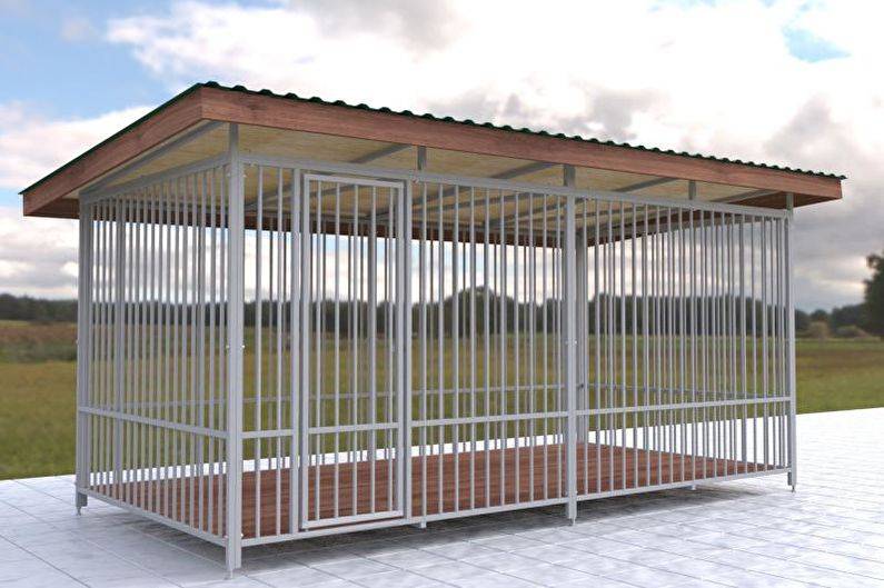Вольер-клетка ограничивает пространство для животного не только по бокам, но и сверху. Из такого заграждения собаке невозможно выбраться самостоятельно. Их используют для кратковременного содержания средних пород или для постоянного проживания мелких питомцев.