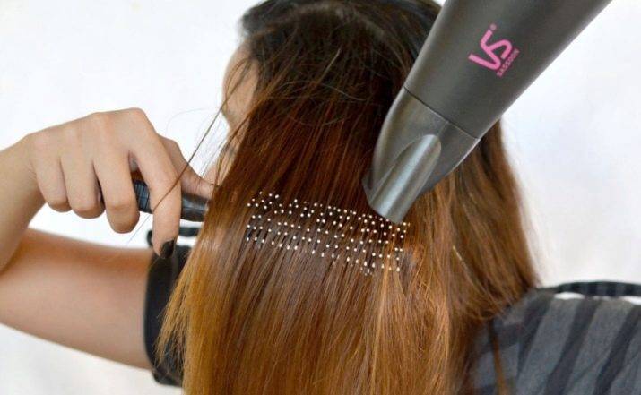 - Высушите волосы феном. Оставьте их слегка влажными, но не мокрыми.