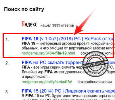 - Итак, в поле поиска вводим название нужной вам игры, для примера я найду «FIFA 19».