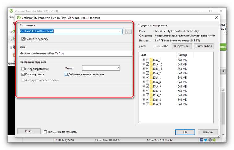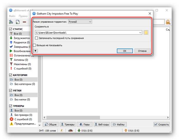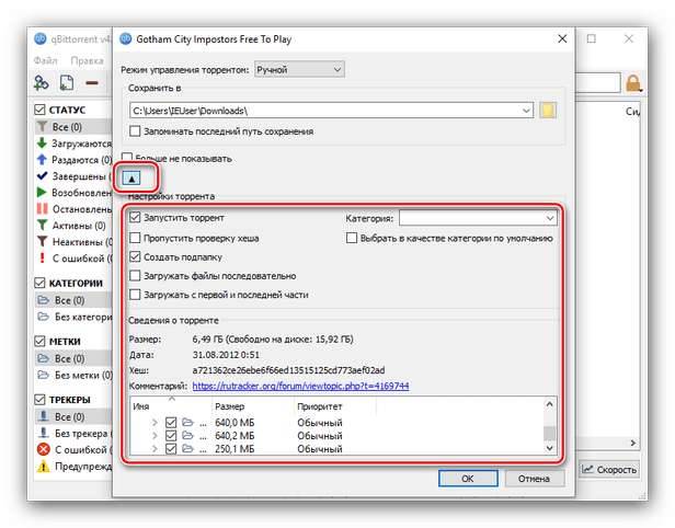 Вариант «Добавить торрент» сходу открывает интерфейс прибавления, а «Добавить торрент (с запросом места сохранения)» позволяет юзеру за ранее избрать положение соответственно.