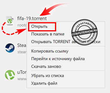 После того, как файл скачан, найдите его и откроется. Загружается в отдельный каталог, который указан в настройках клиента. Если файл не запускается, значит не установлено его соответствие с клиентом. Можно не тратить время на решение данного вопроса. Просто запустите торрент-программу и перетащите .torrent в рабочую область.