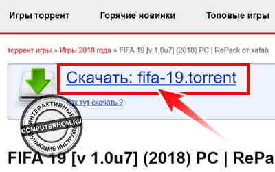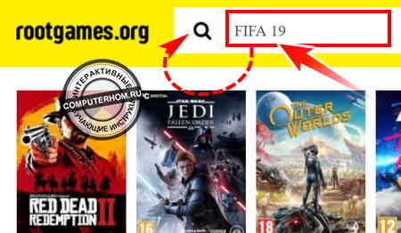 В самом верху сайта, расположено окошко поиска, с помощью не го вы сможете искать компьютерные игры. Давайте им воспользуемся, для примера я найду игру «FIFA 19», и покажу как ее скачать при помощи торрента.Аналогичным способом можно скачать любую игру с данного сайта.