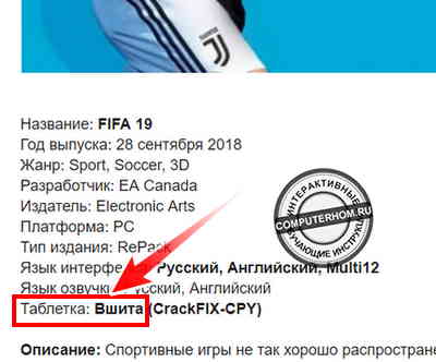 Как этого избежать? Все очень просто, когда вы открыли какую — либо игру, смотрим описание игры, которое описывается сразу после изображения игры.Нам нужна строчка «Таблетка:«. Если в ней вы увидите слово «Вшита», то данную игру можно скачать. После установки данной игры вы сможете в нее поиграть.А вот если напротив строки «Таблетка:», вы увидите надпись «Отсутствует», то после скачивания и установки данной игры, вы не сможете в нее поиграть.