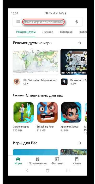 - Войдите в Гугл Play Маркет и активируйте поисковое поле.