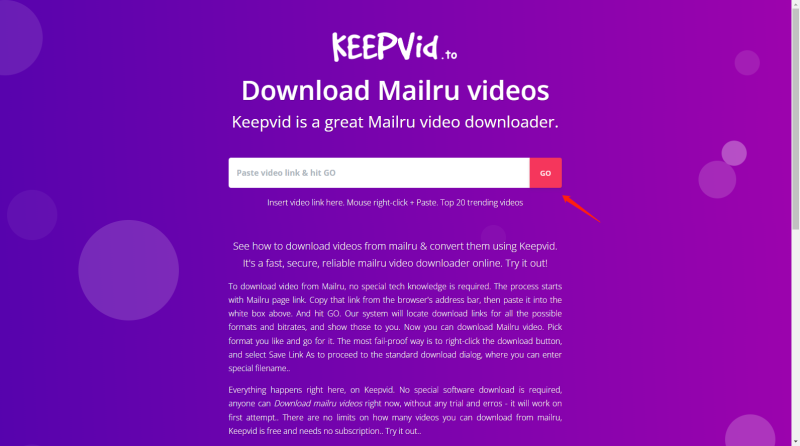 Here are the steps to download a mail.ru video using an online video downloader: