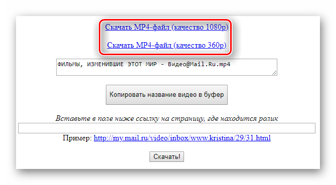 - Вернитесь на сервис Mail.ru и скопируйте её, чтобы скачать видео;