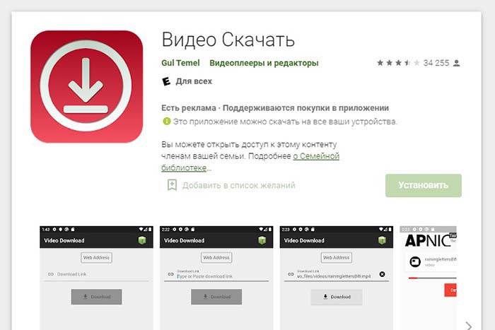 «Видео Скачать» — приложение, которое позволяет загрузить ролики.