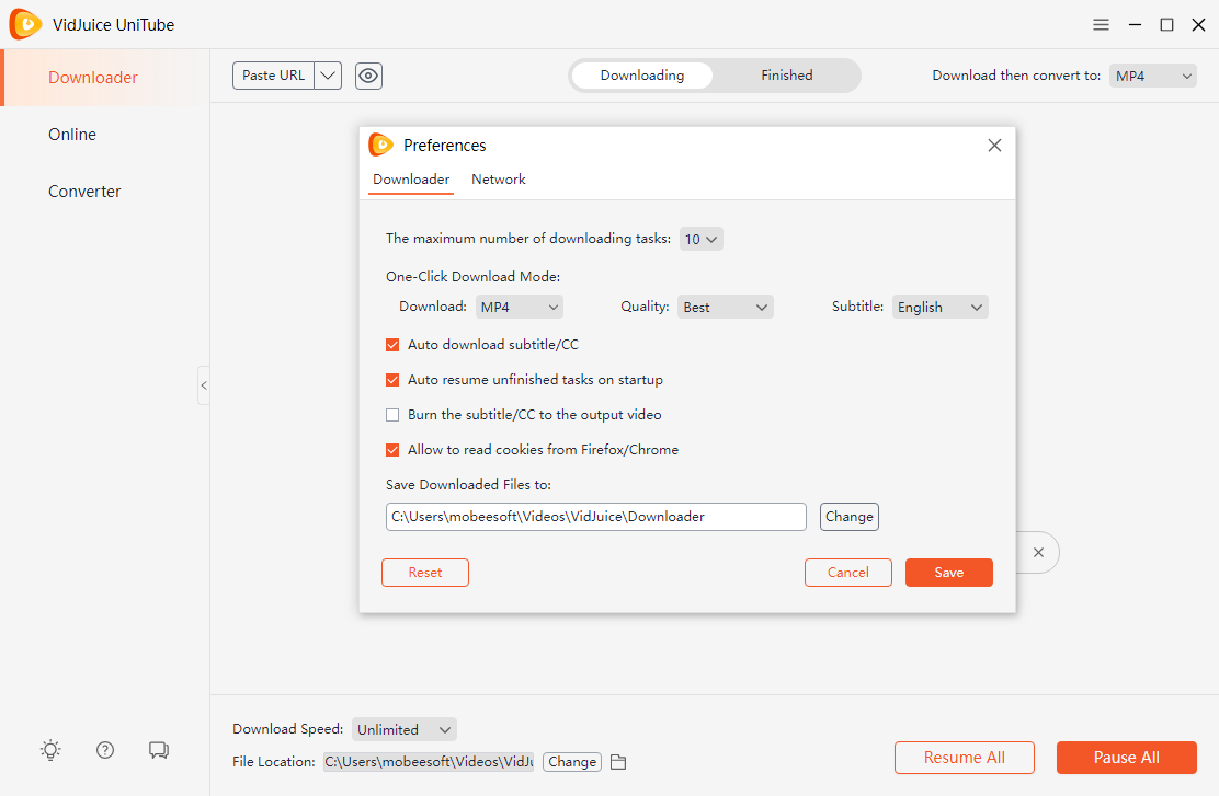 VidJuice UniTube is dedicated video downloader software that supports downloading videos from a wide range of platforms, including Mail.ru. It offers more advanced features and customization options compared to online downloaders and browser extensions.