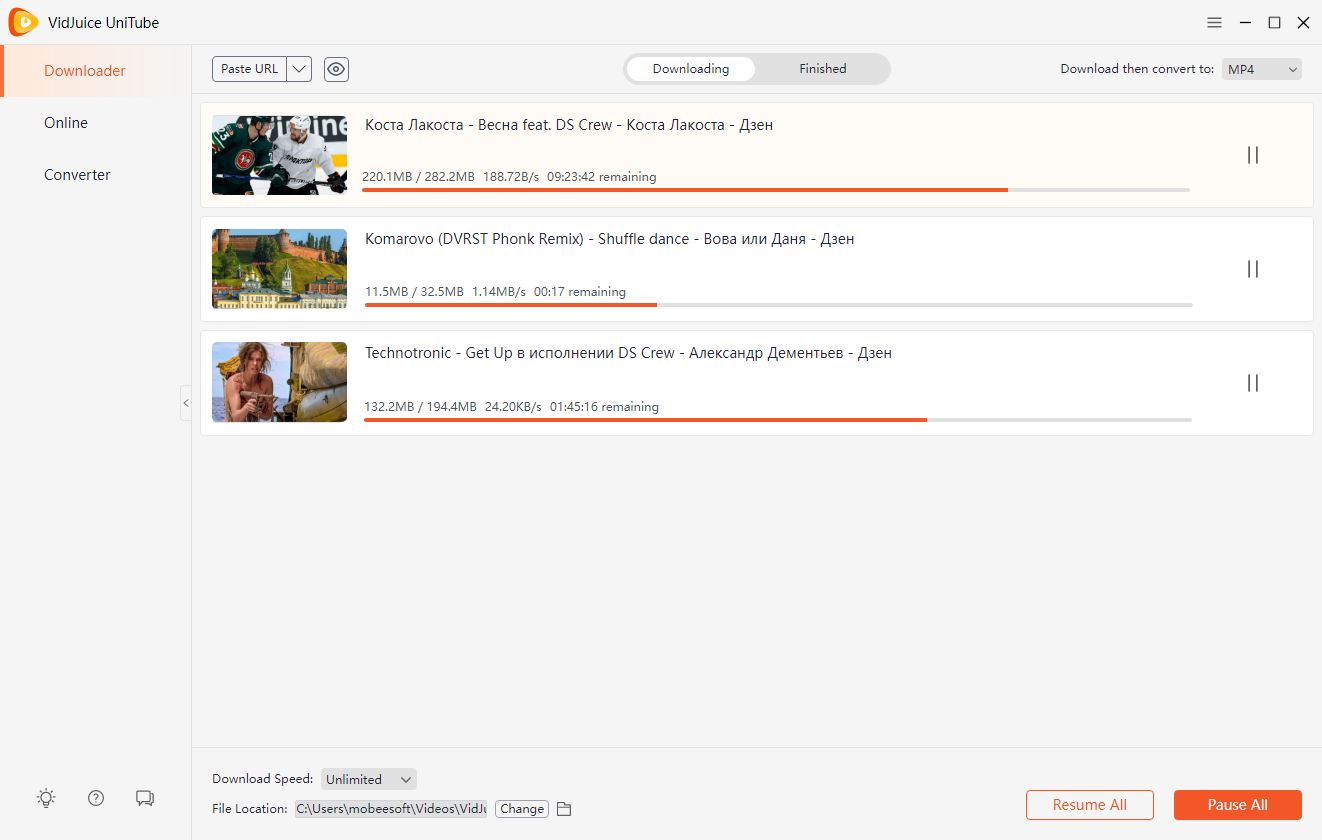 Step 5: Go back to the VidJuice UniTube Downloader tab, and you will see all the downloading mail.ru videos. When the downloads are complete, you can find all the downloaded mail.ru videos under the “Finished” folder.