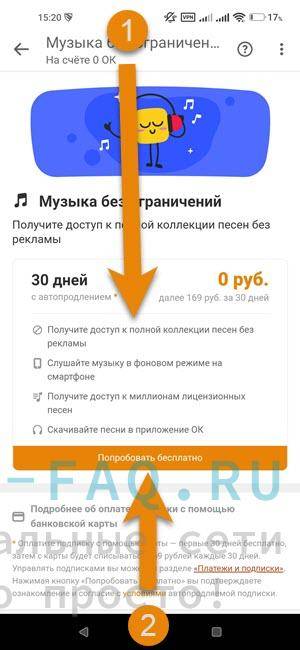 Теперь вы можете целый месяц скачивать бесплатно музыку с ОК. Спустя 30 дней, снимется плата за будущий месяц. Если вы не хотите оплачивать, то через определённые настройки Google play, можете отключить подписку до окончания пробного периода. Или способом ниже.