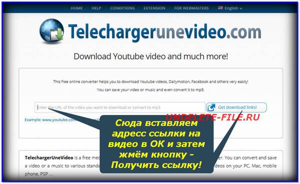 Сервис поддерживает около 40 различных сайтов, в том числе и многие файлообменники, еще можно взять форму для получения ссылок и разместить на своем сайте, что я и сделал. Копируем ссылку страницы с нужным видео и вставляем в форму на сайте.