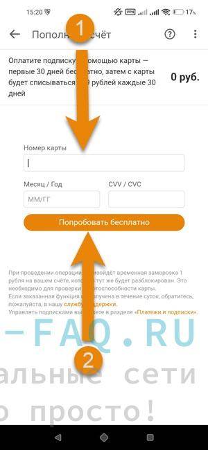 Перейдя в окно оплаты, заполните все информационные поля. Только после этого жмите кнопку “Попробовать бесплатно”. Это делается для того, что бы списать с карты по окончанию пробного периода.