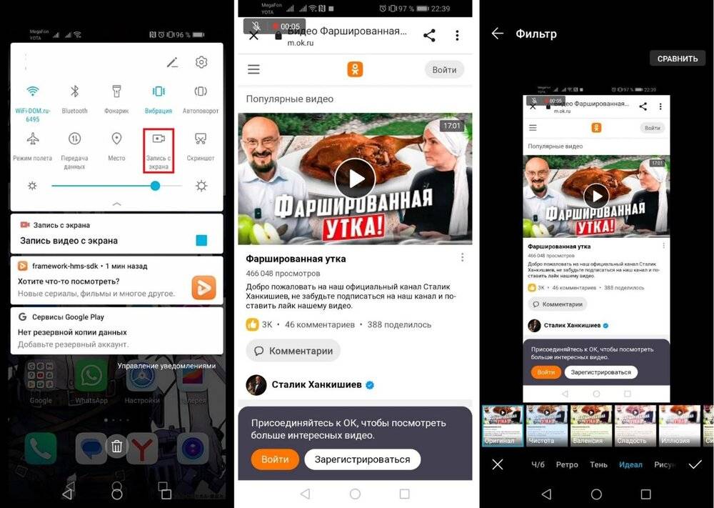 Запись экрана позволит скачивать видеоролики из любой соцсети вне зависимости от настроек приватности, и «Одноклассники» не являются исключением. На ПК для такой задачи лучше использовать программы, а на смартфонах — штатные средства.