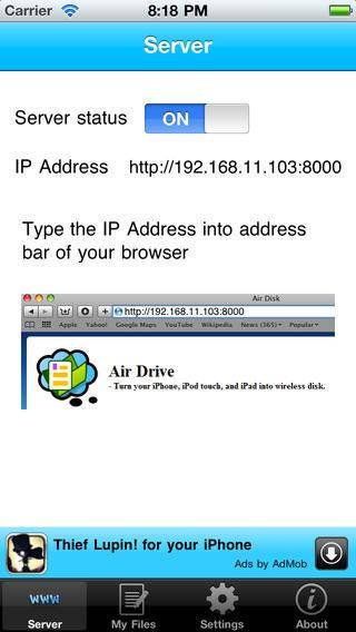 В числе тех приложений, на которые можно обратить внимание, – Air Drive. Необходимо загрузить его из App Store