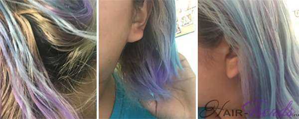 На темных волосах (неважно, окрашенных ранее стойкой краской в темный цвет или от природы темных) нестойкий оттенок будет держаться до двух-трех сеансов мытья головы. С осветленных, мелированных, светлых от природы локонов оттеночное окрашивание смоется за 5-10 раз мытья с шампунем, причем, чем ярче и насыщеннее оттенок – тем дольше он будет вымываться