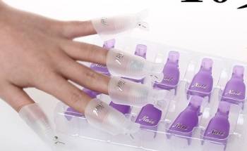 Отсутствие фольги – не повод ходить с неаккуратным маникюром. Вместо фольги можно использовать скотч, пластырь. Либо помогут профессиональные средства: в продаже есть специальные зажимы для снятия шеллака, клипсы, прищепки, пластмассовые колпачки. Они мало чем различаются и с одинаковой эффективностью упростят процесс. В колпачки заливается жидкость для снятия шеллака, а затем каждый колпачок одевается на пальчик на 10 – 15 минут.
