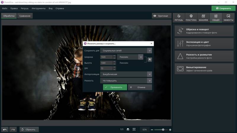 Редактор имеет пресеты для печати, монитора и социальных сетей