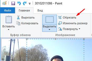 Затем, как и с первой фотографией делаем обрезку. “Выделить” – “Прямоугольная область” – “Обрезать”.