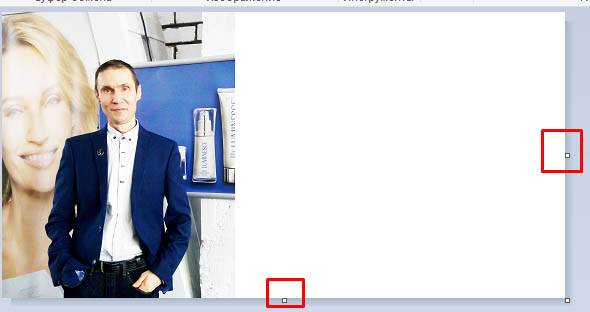 - Вставленная картинка сразу выбрана, а значит, можно изменить ее размер и положение, подогнав под уже существующую заготовку.