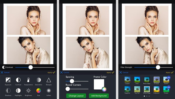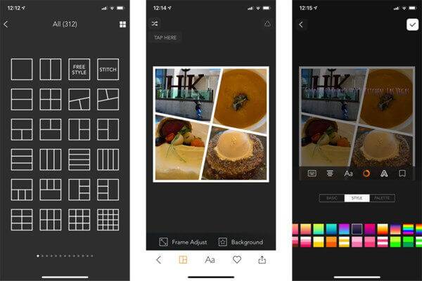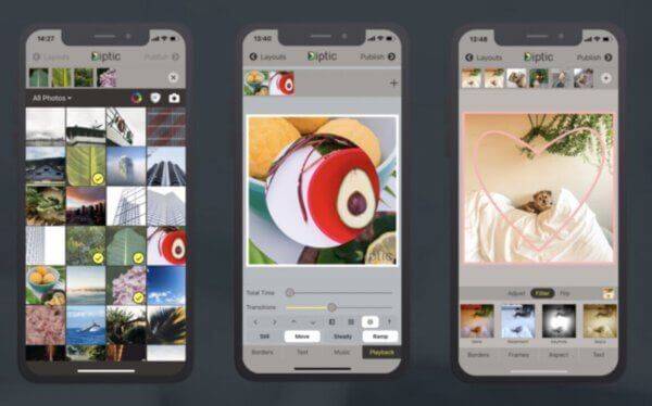 Diptic – одно из лучших приложений для фотоколлажей, позволяющее объединить несколько изображений на одном экране с более чем 190 макетами. Вы также можете настроить границы для создания уникальных шаблонов. Однако он предоставляет только 14 фильтров для редактирования изображений.