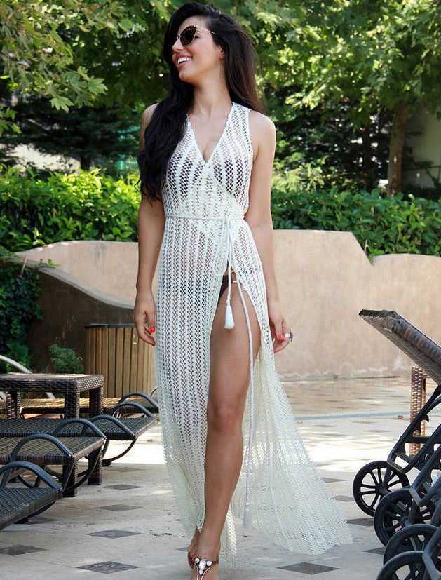 Вязаное полотно. Применяется для изготовления теплых моделей. Особенности материала, в числе которых плотная текстура, предполагают его использование стройными модницами. Если задействовать тонкую нить, можно связать пляжное летнее платье