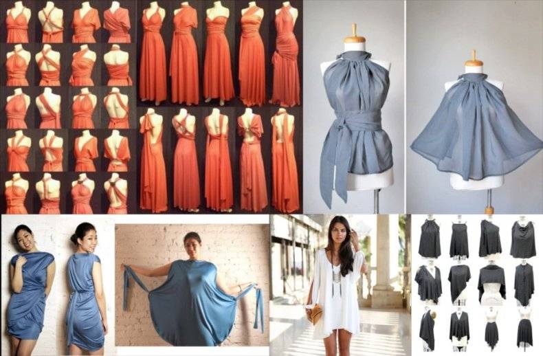 Платье-трансформер — удобный вариант трикотажного наряда. Делается оно очень просто и без выкройки. Нужно следовать инструкции:
