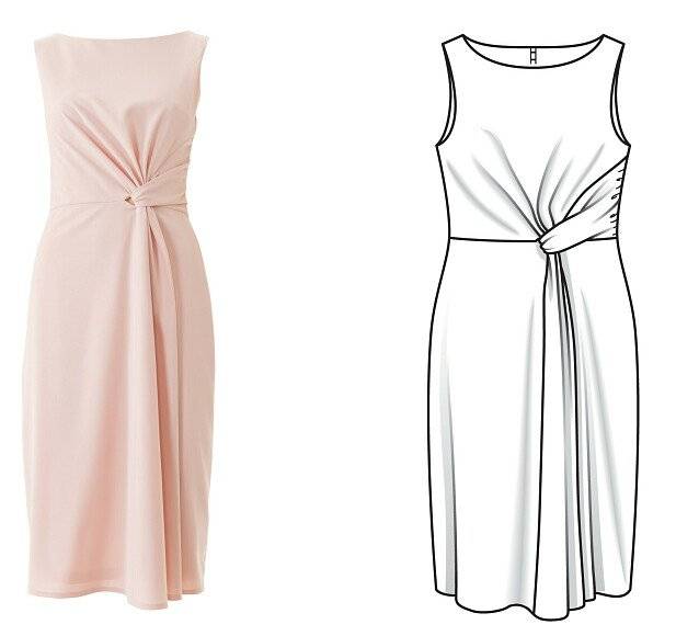 Юбка с запахом для шифонового платья поможет разнообразить образ. Для этого аналогично первым двум способам изготавливаем лиф для наряда, а далее следуем инструкции: