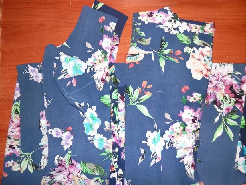 Оформляем срезы пройм и горла обтачками. Приутюживаем так, чтобы на изнанке получился кантик.