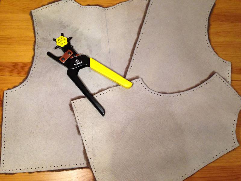 Для одной жилетки потребуется кожи или замши 60 – 70 дм. Это приблизительно один, средней величины, пласт кожи.
